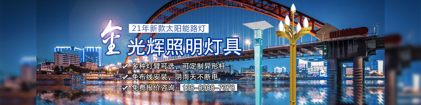 沈陽金光輝道路照明工程有限公司是一家從事太陽能路燈、庭院燈、高桿燈、景觀燈、草坪燈、工礦燈、LED照明、監控桿、信號燈桿、音樂噴泉等室內外照明燈具綜合性生產廠家及專業的研發、生產、銷售、服務為一體的技術企業。